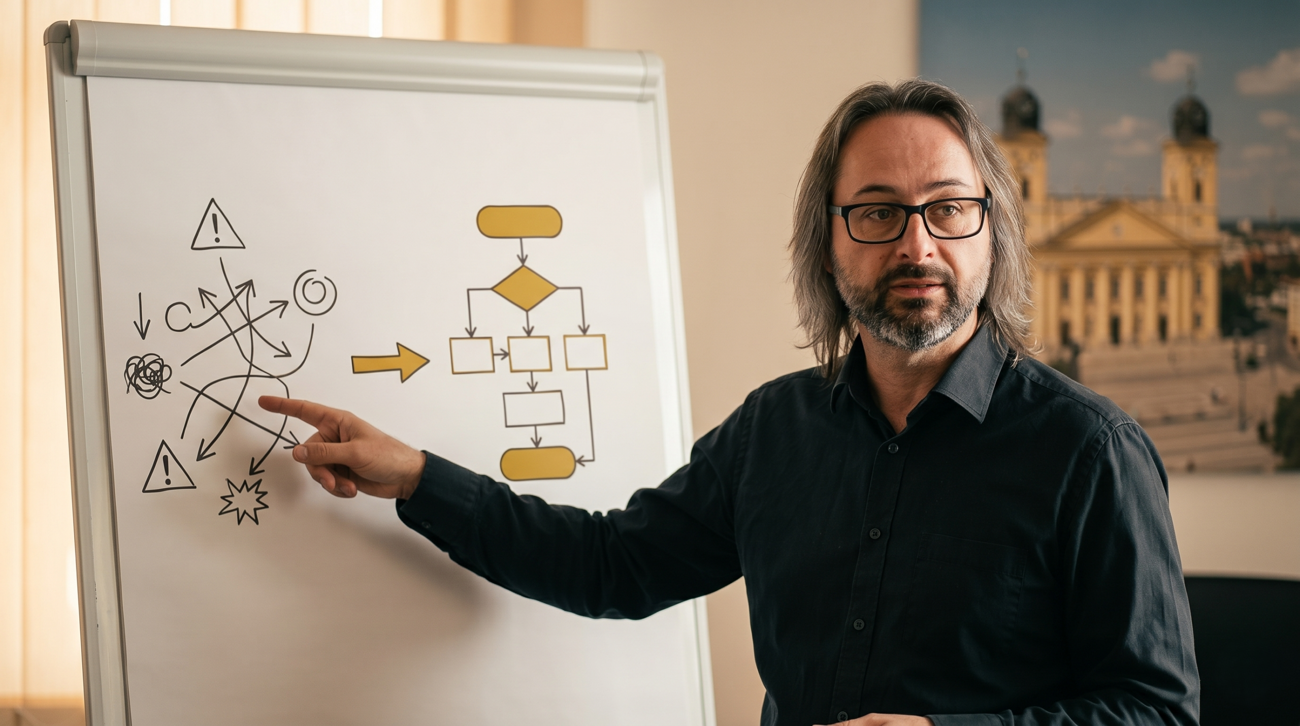 1990 óta építek vállalatirányítási rendszereket. Ebből az időből tudom: a legtöbb cégnél nem a szoftver a probléma — hanem az, hogy senki nem állt meg és nem nézte meg, hogyan kellene a folyamatoknak működniük.